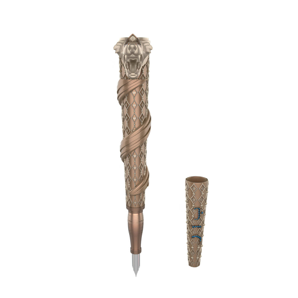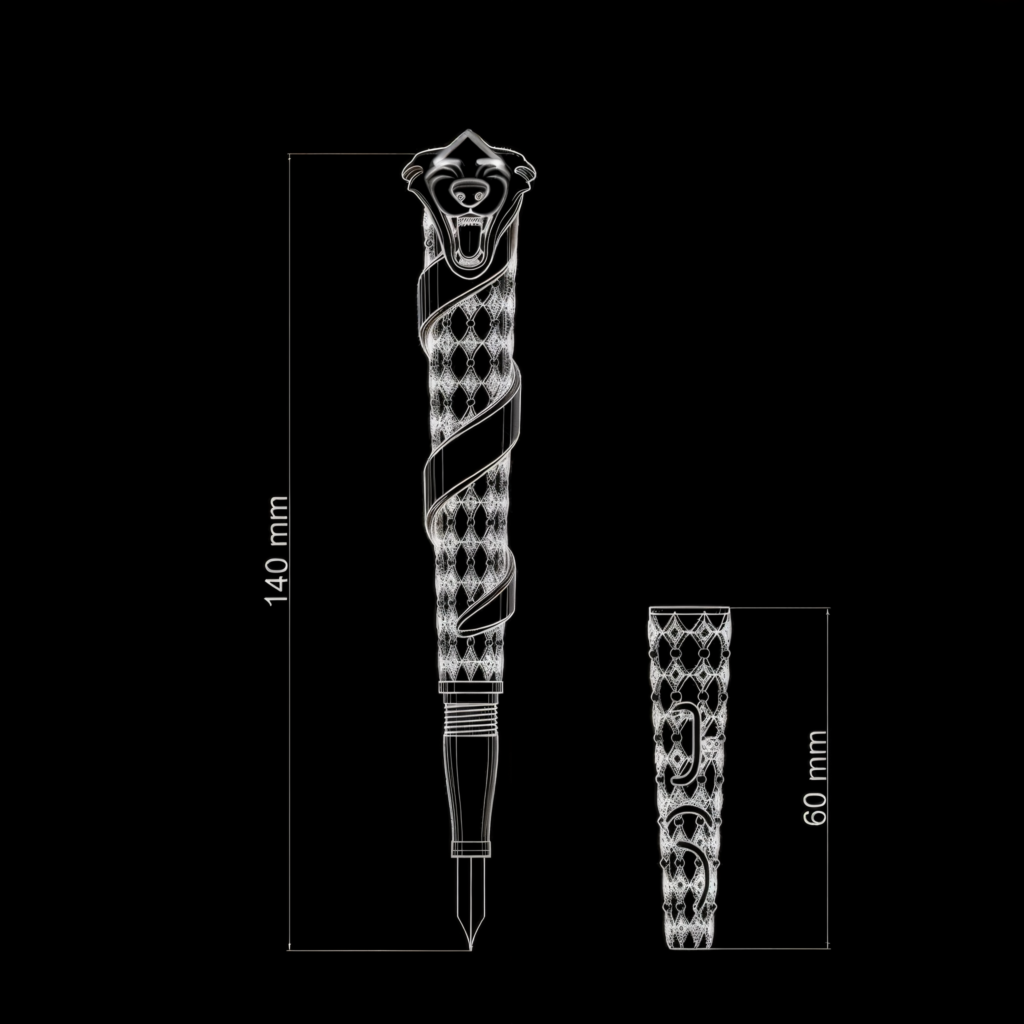 This fountain pen features embossed diamond patterns inspired by traditional kilim motifs, with tulip and geometric details reflecting cultural memory in a modern design.